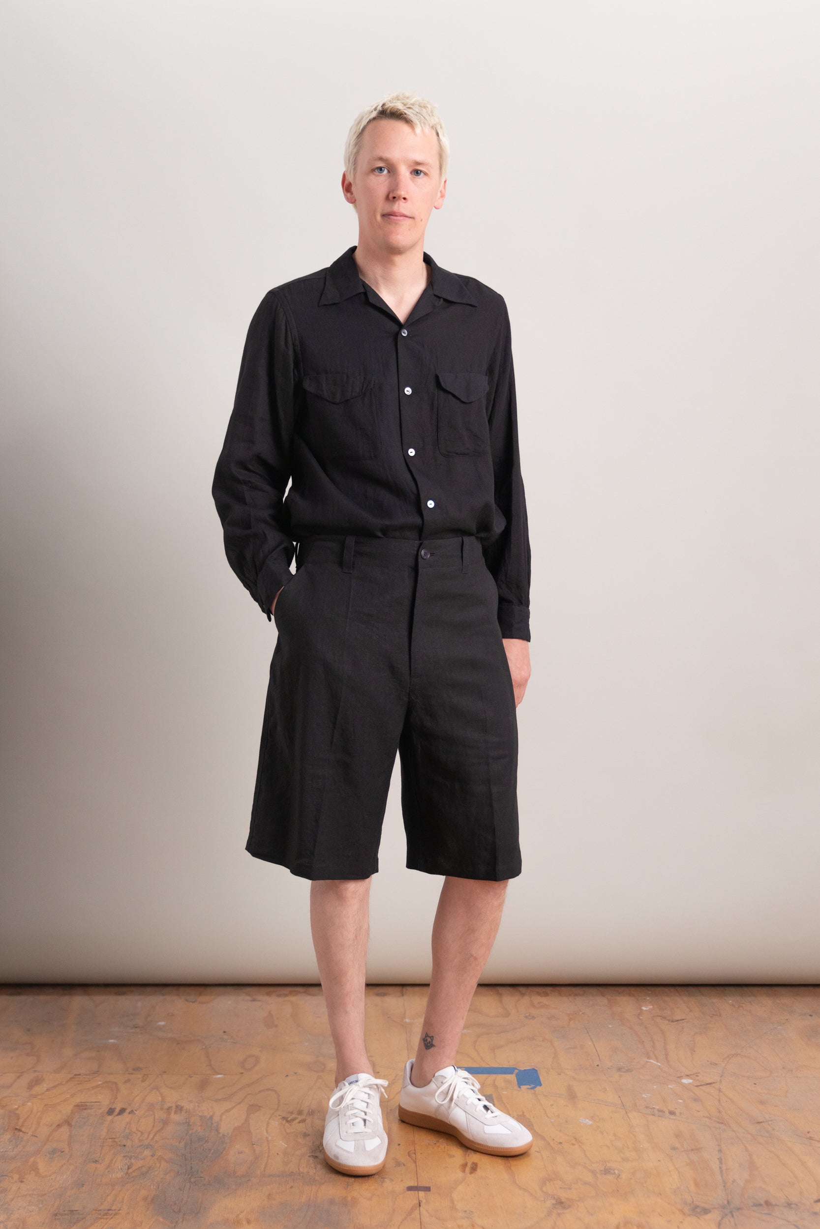 ATOLL SHORTS IN BLACK HIGH DENSITY LINEN
