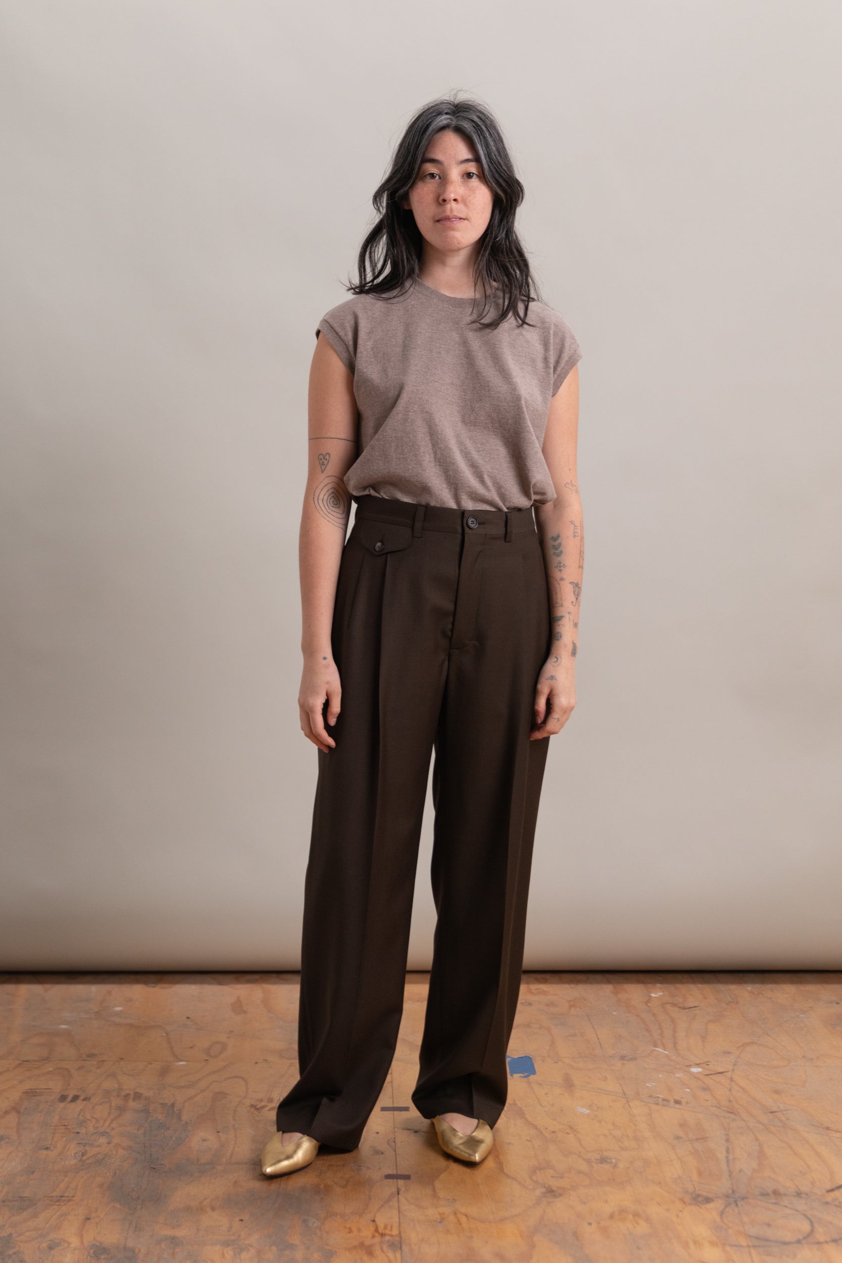 DOUBLE PLEATED TROUSER IN MOCHA MERINO WOOL