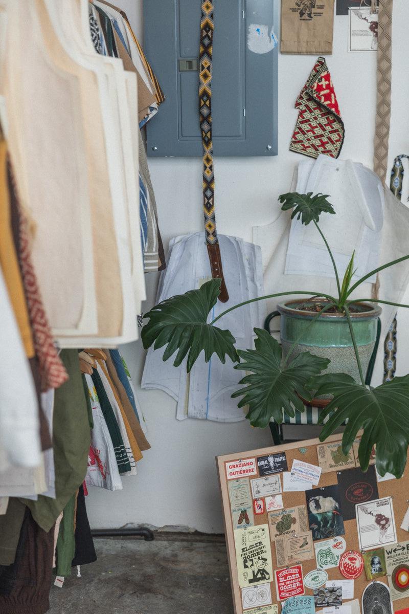 We recently spent some time visiting with Alejandro of Portland-based brand Graziano & Gutierrez discussing a wide range of topics, from recent movies (get two movie-heads in one room…), to the complexities of growing an apparel brand whilst clinging tightly to the quality and craftsmanship innate to carefully hand sewn garments. Although Alejandro does indeed sew every garment for Graziano & Gutierrez by hand, he generously made time for us to swing by and snap a few photos of his space to share with you all.