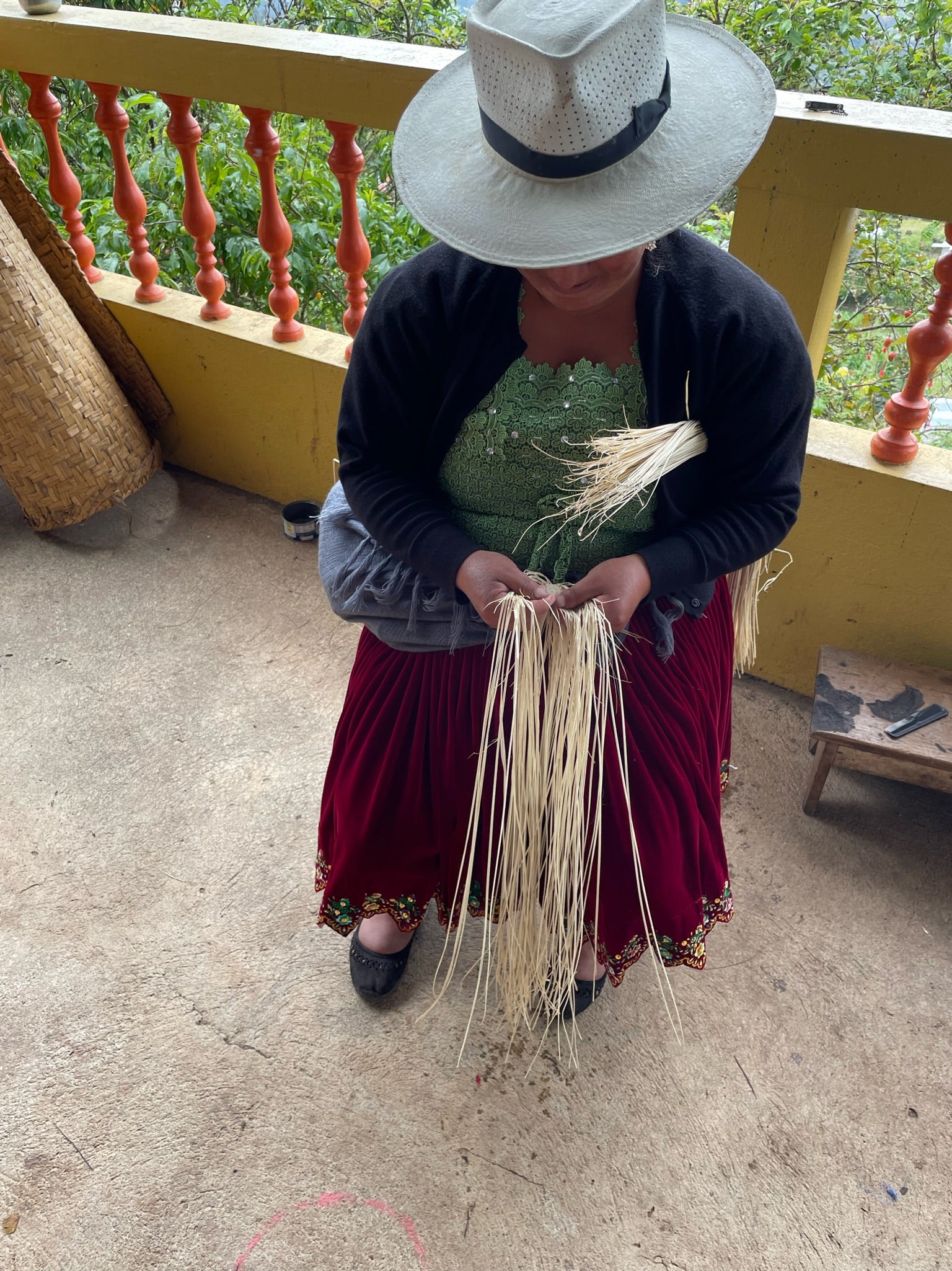 The toquilla straw fiber comes from endemic palm trees that grow near the coast. The fine straw is transported to villages in higher elevations to dry. Typically, local suppliers fill orders from milliners and hat companies from all over the world. Each straw hat style is unique, and weavers often specialize in distinct weaves and patterns and are commissioned based on the intricacy of their skill.
