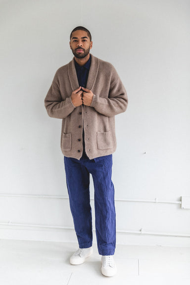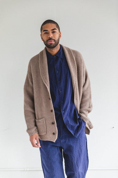 SUPER HIGH GAUGE COTTON KNIT SHIRT CARDIGAN IN BROWN