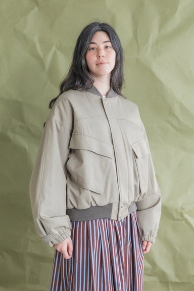 BRUSHED ALPACA WOOL DOWN BLOUSON IN LIGHT GRAY