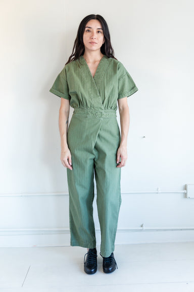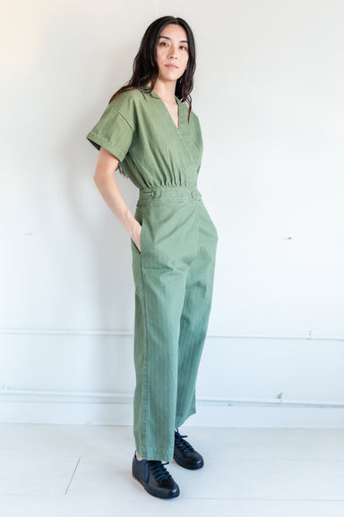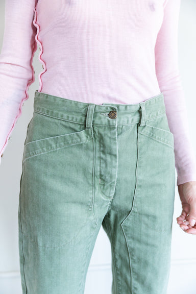 VALI PANT IN MOSS HERRINGBONE TWILL