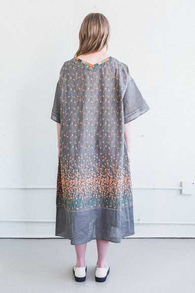 EMBROIDERY DRESS IN CHARCOAL COTTON/RAMIE