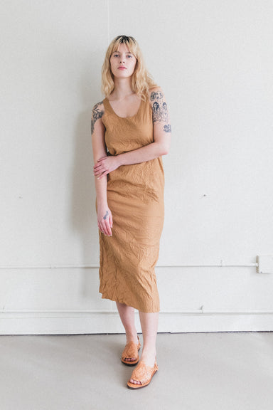 WRINKLED WASHED FINX TWILL DRESS IN BROWN