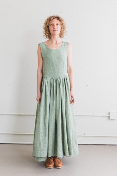 APRON DRESS IN SAGE LINEN