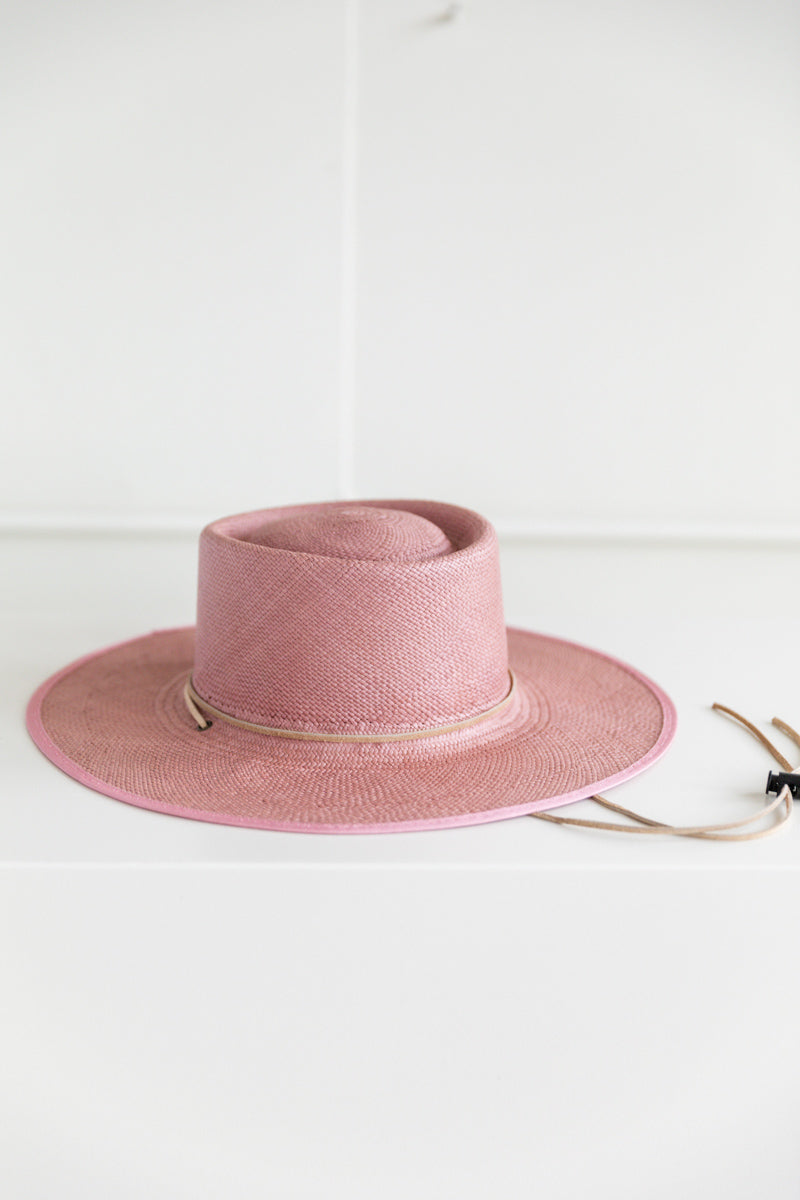 The Alderman hat has a telescoping flat top crown crown, a 3.5" grosgrain edged brim and a split suede drawstring. Click here to view Panama straw color swatches.