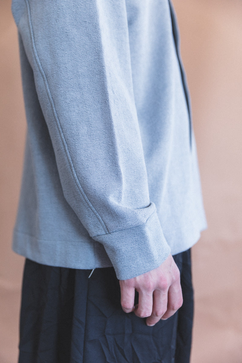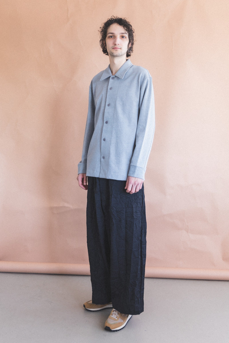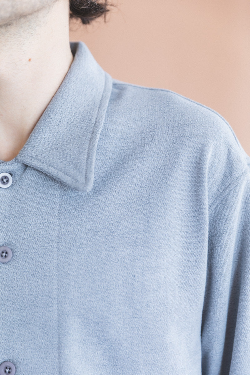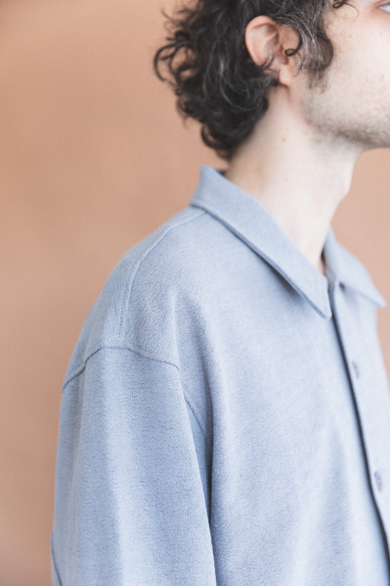 The Francisco Buttondown shirt is made of a custom textured jersey inlay, knit in Japan with a dry, crisp hand. It is cut with a relaxed shoulder, the fabric's moderate drape falls straight through the body. It is finished with a wide placket and a straight hem, has corozo buttons, point collar and a self cuff.