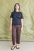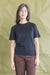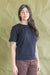 Jersey fabric knitted on a high-gauge machine using extra-long staple Pima cotton, processed and spun in its cotton state to maximize its volume. The fabric undergoes a treatment to minimize fuzz, resulting in a clean drape and a smooth, soft texture. Regular fit