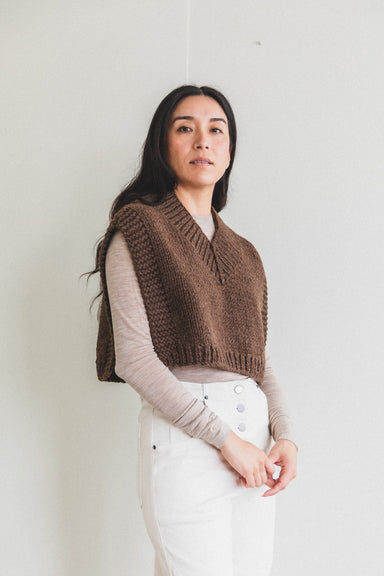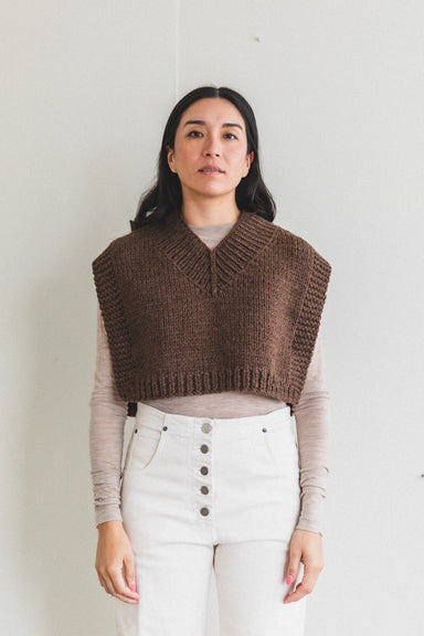 HAND KNIT WOOL BUNON VEST IN EARTH