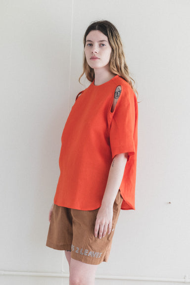 OLIVIA SHORTS WITH CROCHET IN OCHRE LINEN