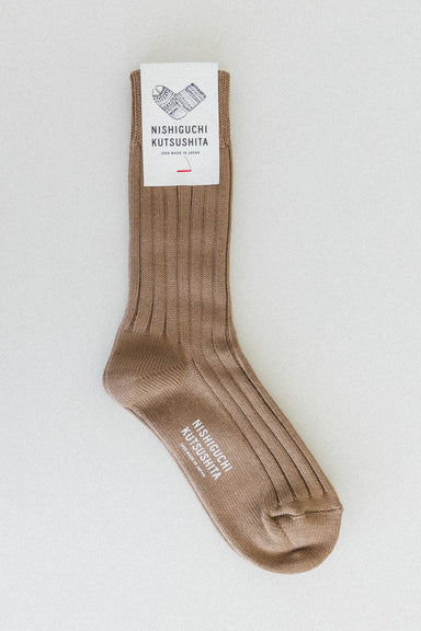 LINEN RIBBED SOCKS IN MOCHA BROWN
