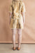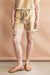 Athletic style shorts with an elastic and drawstring waist, side seam pockets, and contrast trim in a striped silk fabric.