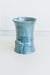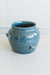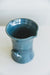 Small blue-grey stonewear vase with ruffled embellishments as handles. Inspired by medieval clothing, these have a gloss glaze.