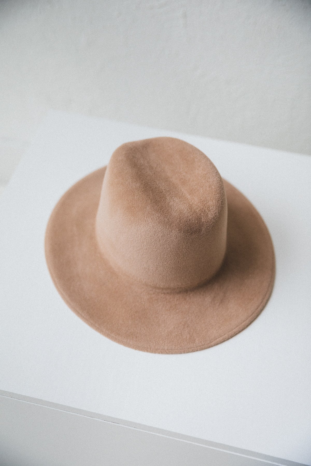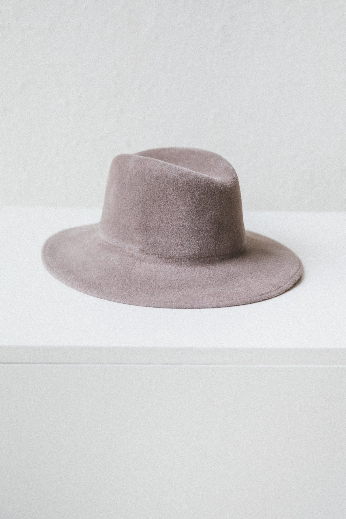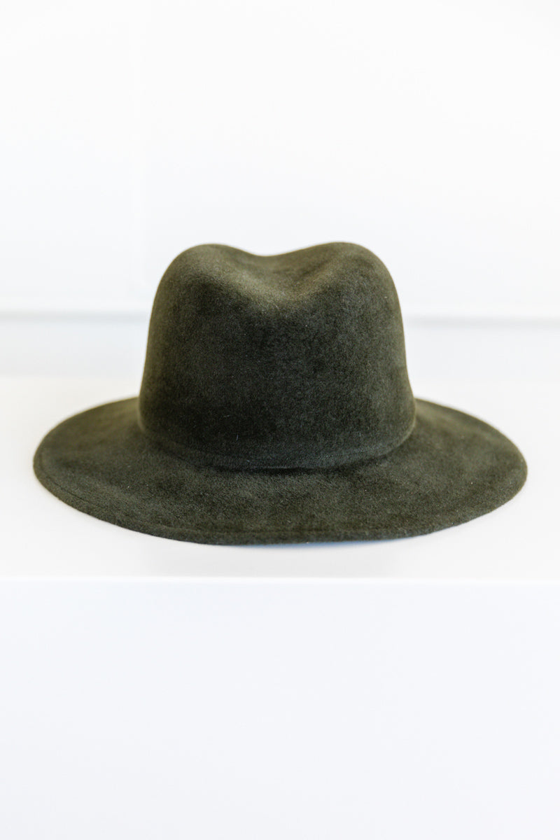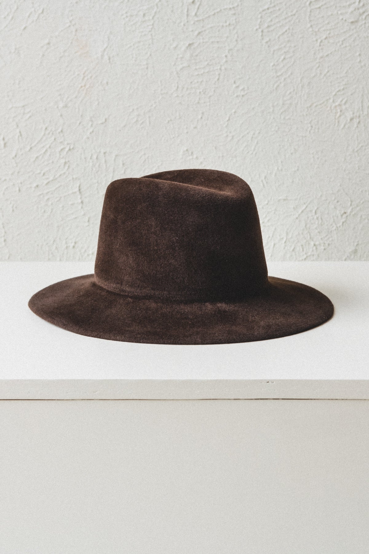 The Jackson hat has a crease in the center of the crown and no pinches. It has a 3" sewn edge brim, and is made of a high quality velour fur felt, which has a short nap and is very soft. Click here to view velour felt color swatches.