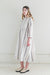 The Summer Stripe Dress is fully lined and made of a beautiful striped cotton. It has a high crew neckline, bracelet length sleeves, an optional drawstring at the waist and a rear button closure.